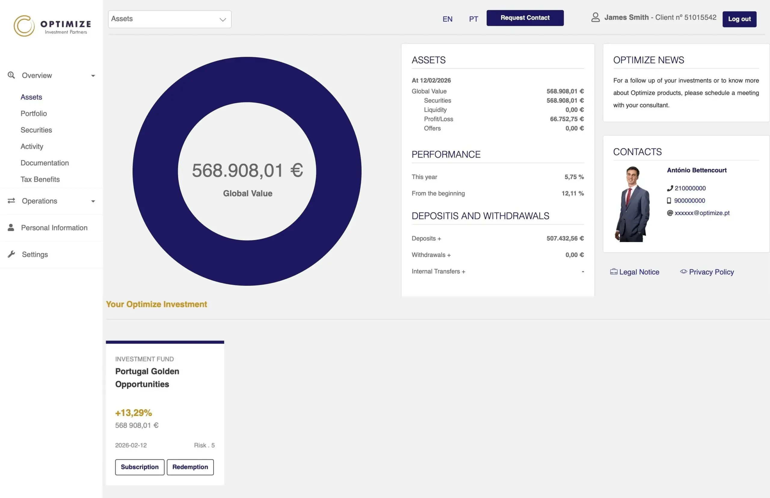In the Optimize Portugal Client Portal, you can track performance, adjust your strategy, and manage your investments.